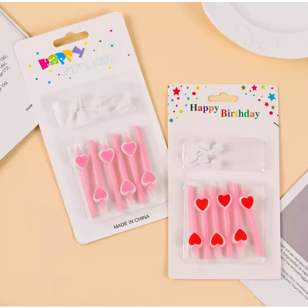 Set de 6 Lumânări cu Inimioare Roz - Happy Birthday