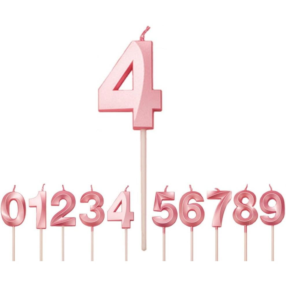 Lumânare Cifră 4,®, Model Diamond, 5 x 3.4 cm, Roz