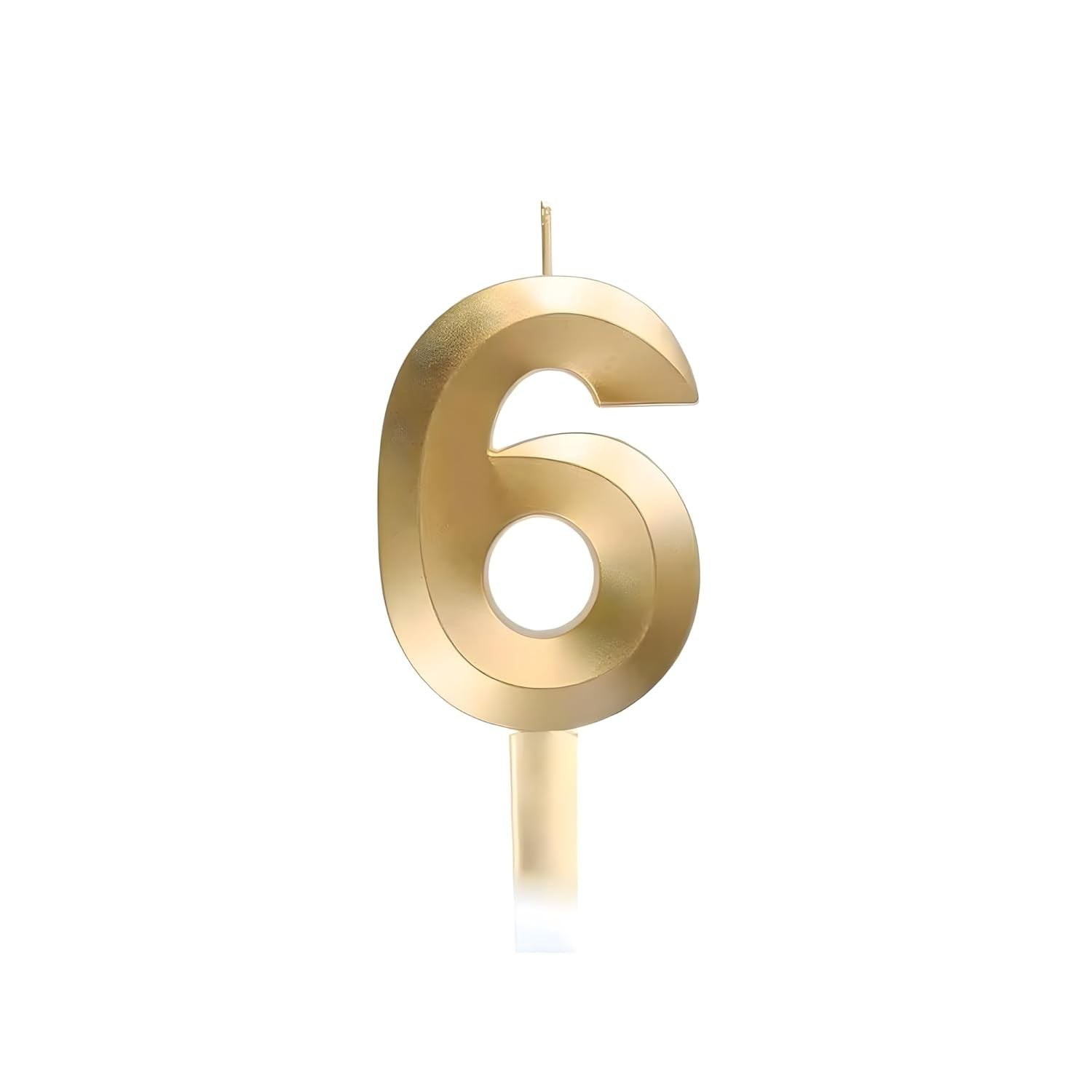 Lumanare Cifra 6, Model Diamond, 5 x 3.4 cm, Auriu