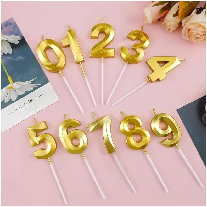 Lumânare Cifră 6,®, Model Diamond, 5 x 3.4 cm, Auriu