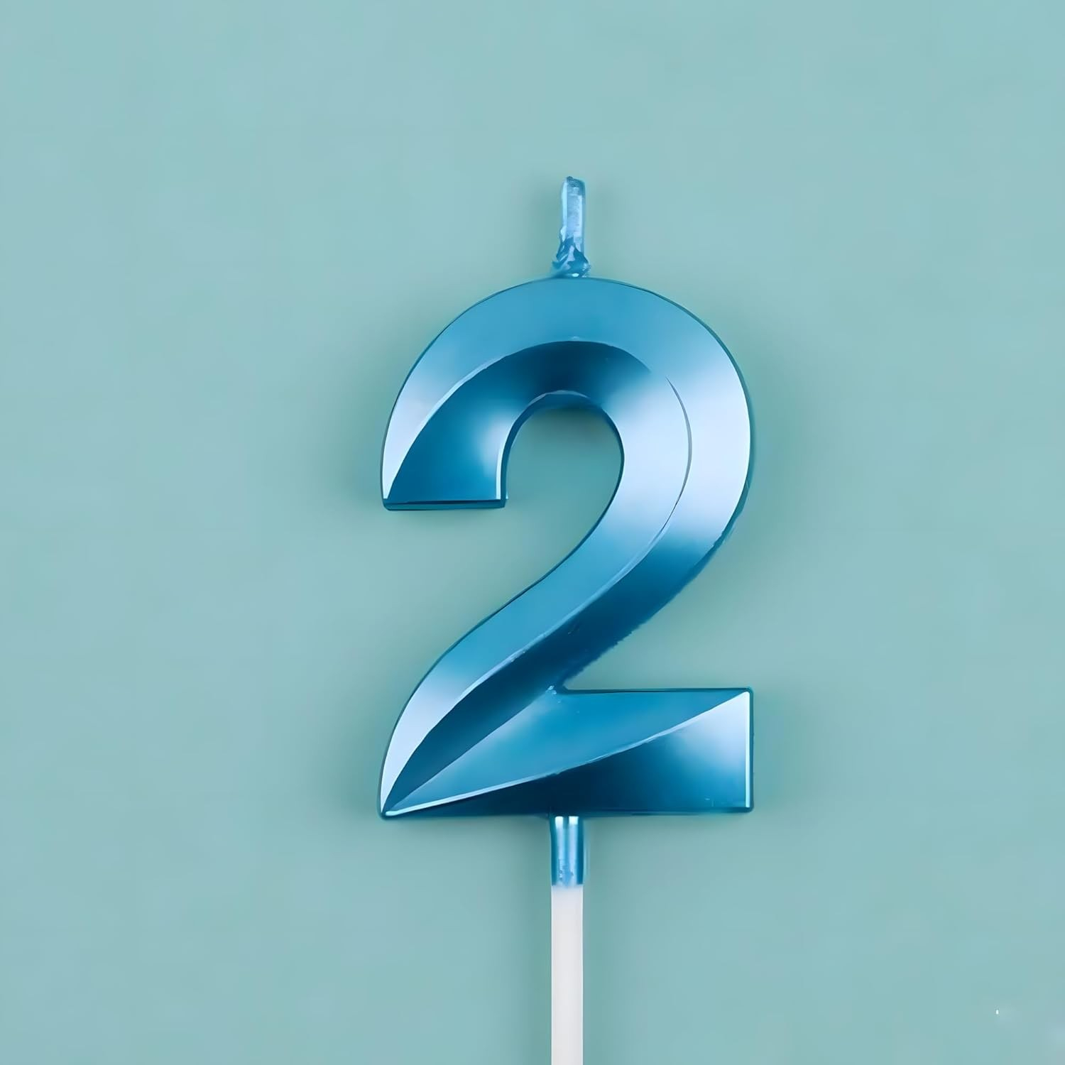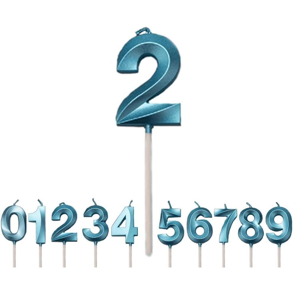 Lumânare Cifră 2,®, Model Diamond, 5 x 3.4 cm, Albastru