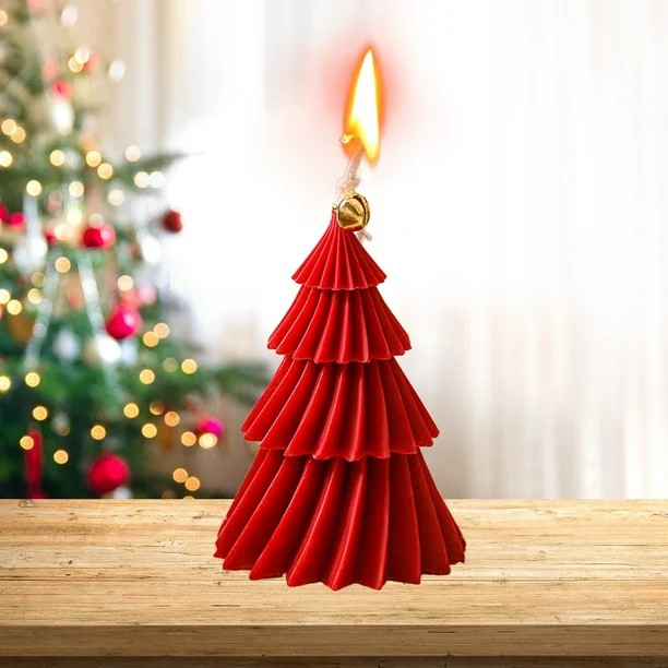 Creeaza un decor de poveste in perioada sarbatorilor cu aceasta lumanare decorativa in forma de brad de Craciun. Cu un design elegant in straturi, de culoare verde intens, si accesorizata cu un clopotel auriu, aceasta lumanare este perfecta pentru mese festive, cadouri sau aranjamente de iarna.