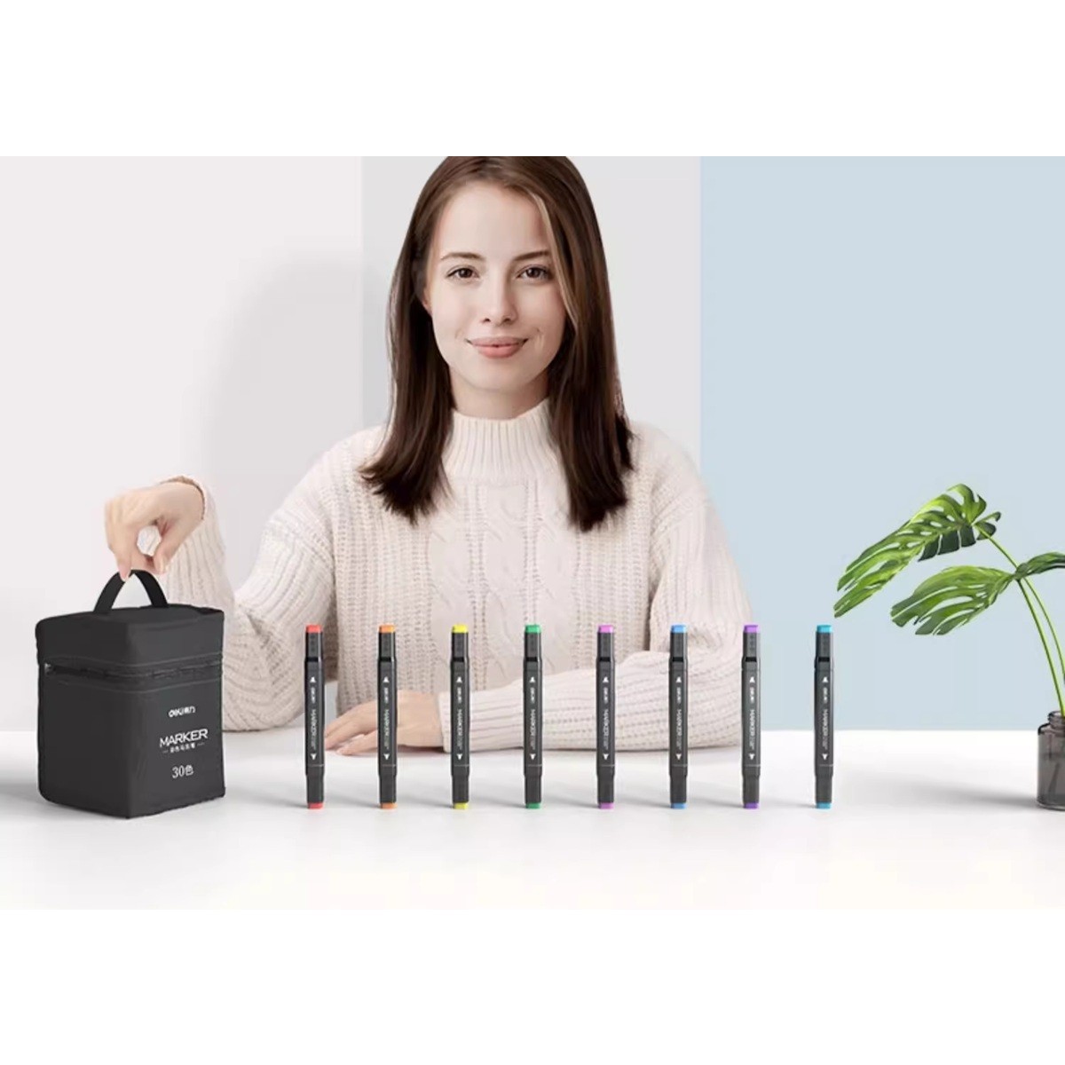Set 24 Markere – Bază de Ulei | Dublu Capăt: Subțire și Gros | Vârfuri 1 mm, 3 mm și 6 mm | Geantă Depozitare Oxford | 15 cm | Multicolor
