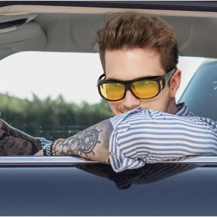 Ochelari pentru Viziune pe Timp de Noapte, Flippy, Polarizati, pentru Condus, Ciclism, cu Posibilitatea Purtarii peste Ochelarii de Vedere, cu Lentila Galbena, pentru Protectie, Rama Neagra, Pc, 15x5 cm