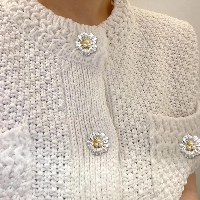 Accesoriul pentru nasturi Flippy, model floare cu perle, este un detaliu sofisticat care transformă instant orice ținută. Cu un design floral elegant, decorat cu perlă și petale metalice cu aspect strălucitor, acest accesoriu adaugă rafinament cămășilor, bluzelor sau rochiilor. Se aplică ușor peste nasturi, fără unelte, fiind ideal pentru actualizări rapide de stil, atât în contexte casual, cât și formale.