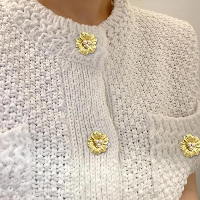 Accesoriul pentru nasturi Flippy, model floare cu perle, este un detaliu sofisticat care transformă instant orice ținută. Cu un design floral elegant, decorat cu perlă și petale metalice cu aspect strălucitor, acest accesoriu adaugă rafinament cămășilor, bluzelor sau rochiilor. Se aplică ușor peste nasturi, fără unelte, fiind ideal pentru actualizări rapide de stil, atât în contexte casual, cât și formale.