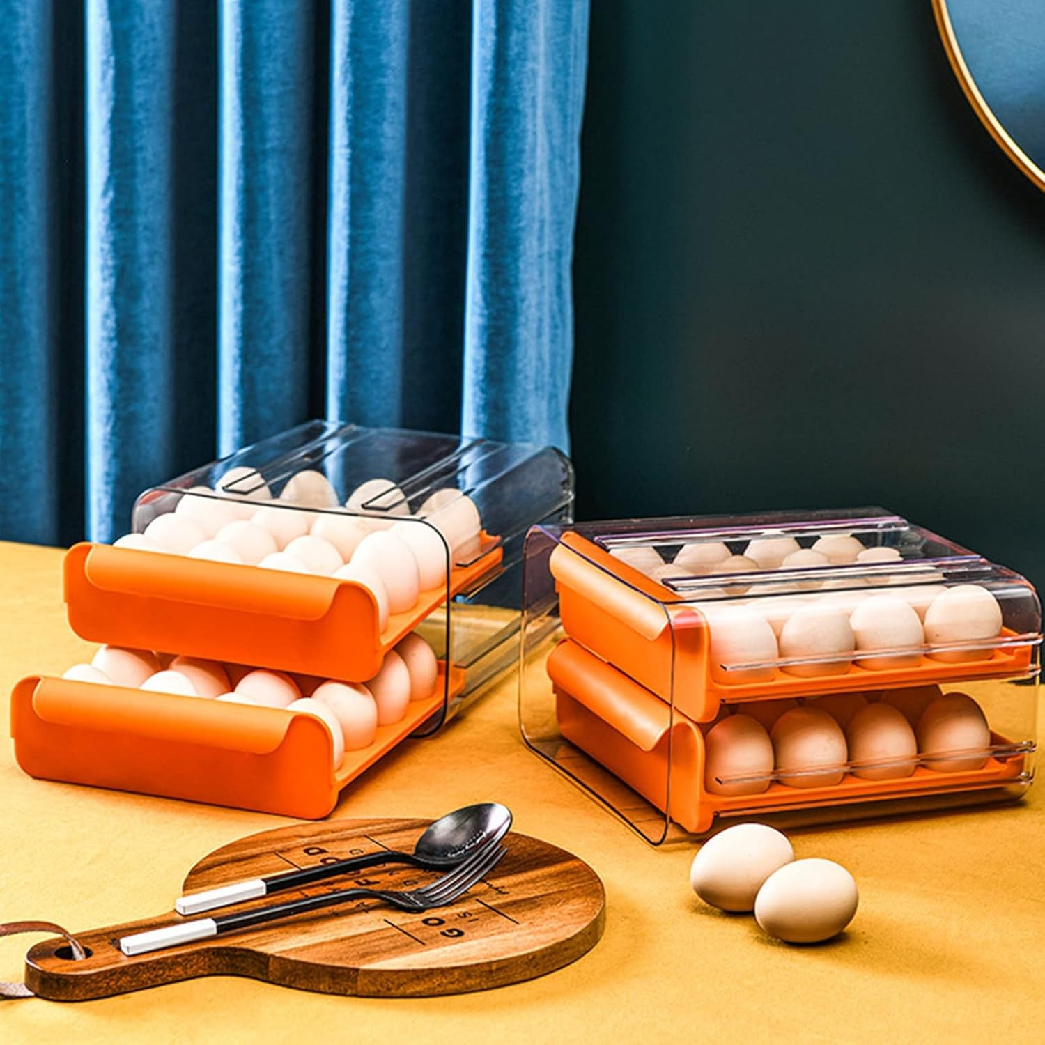 Suport pentru Oua, Strat Dublu, Capacitate 32 de Oua, 23.5x21.5 cm, din Plastic, Portocaliu