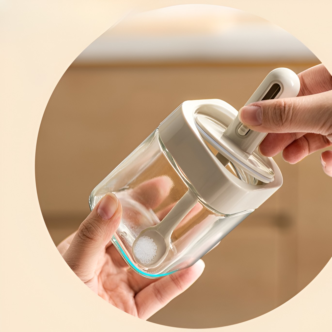 -Depozitare ușoară și convenabilă, lingura și capacul fiind integrate.