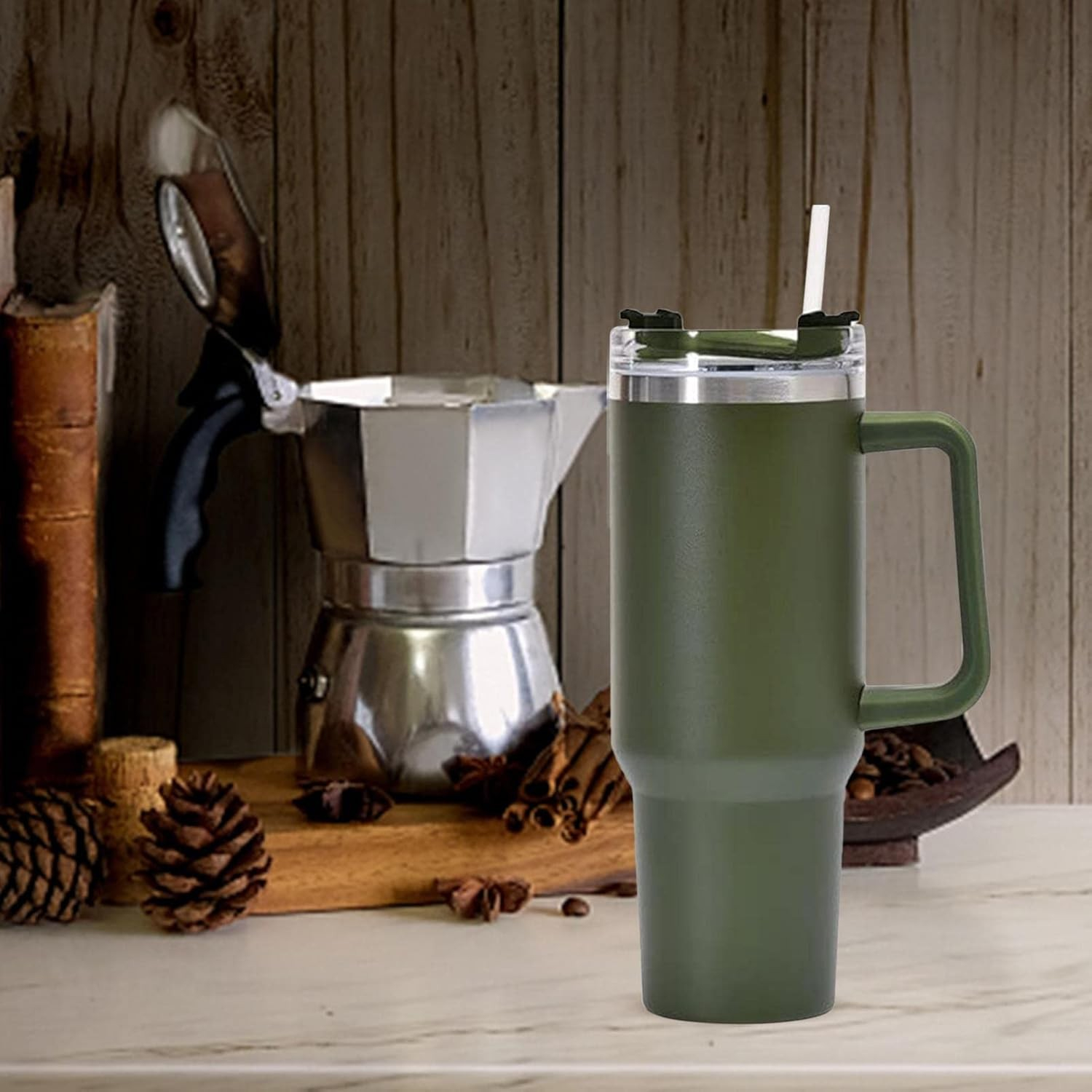 Continut Pachet: Cana Termos din Plastic, Flippy, pentru Bauturi Calde si Reci, cu Maner, 9.9x9.9x27 cm, Verde Army