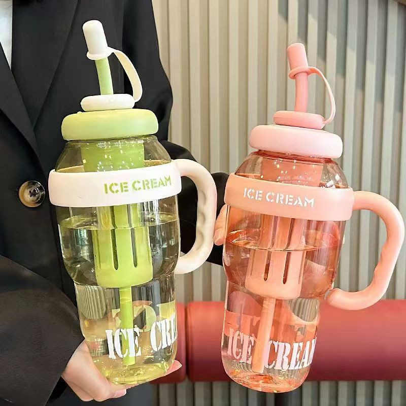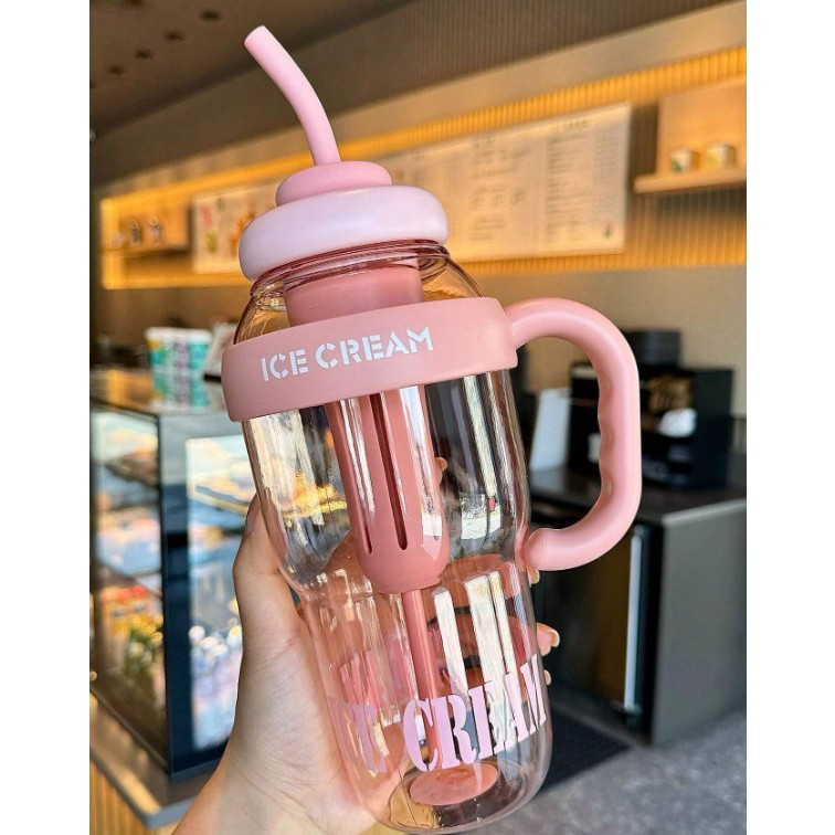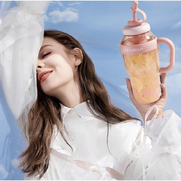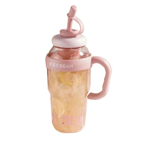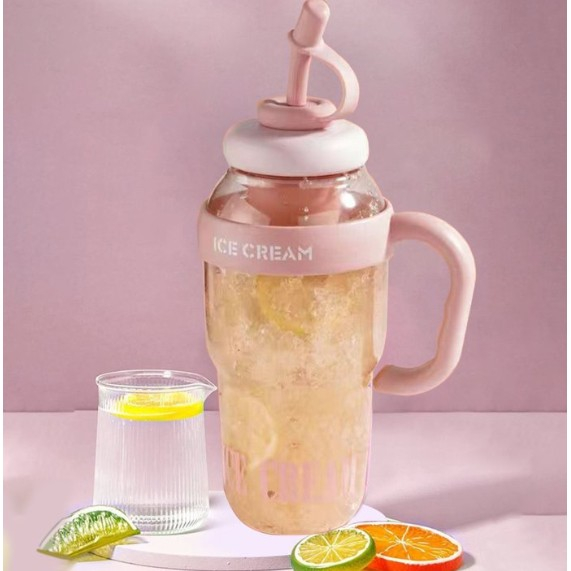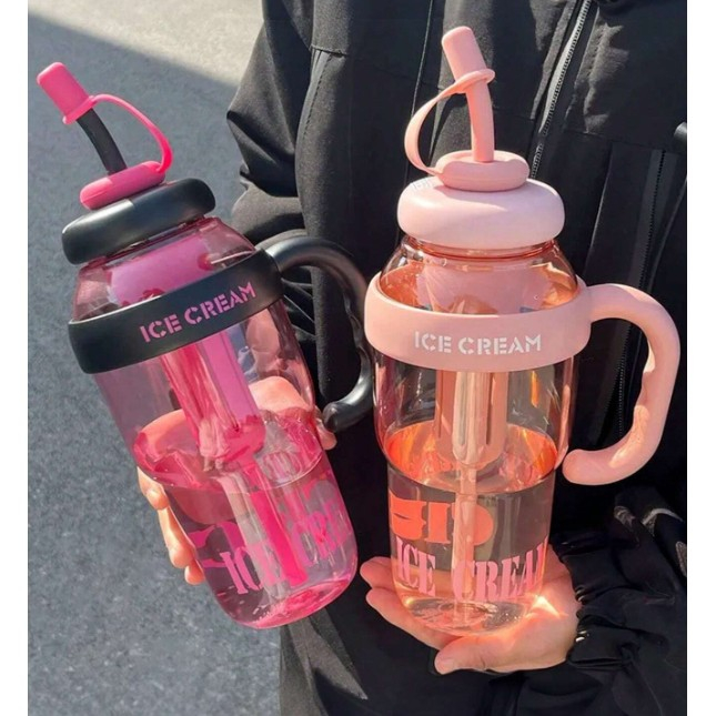 Descriere Produs: Sticlă de Apă Transparentă, 1400 ml, cu Pai și Capac Roz deschis