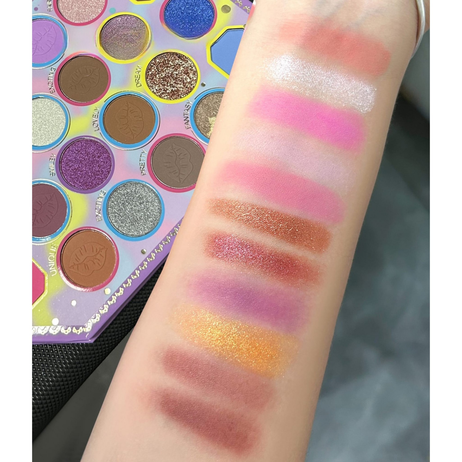 Cu o gamă diversă de nuanțe mate și sidefate, această paletă permite exprimarea creativității în machiaj, iar texturile sale catifelate, mat și cu glitter asigură un finisaj impecabil.