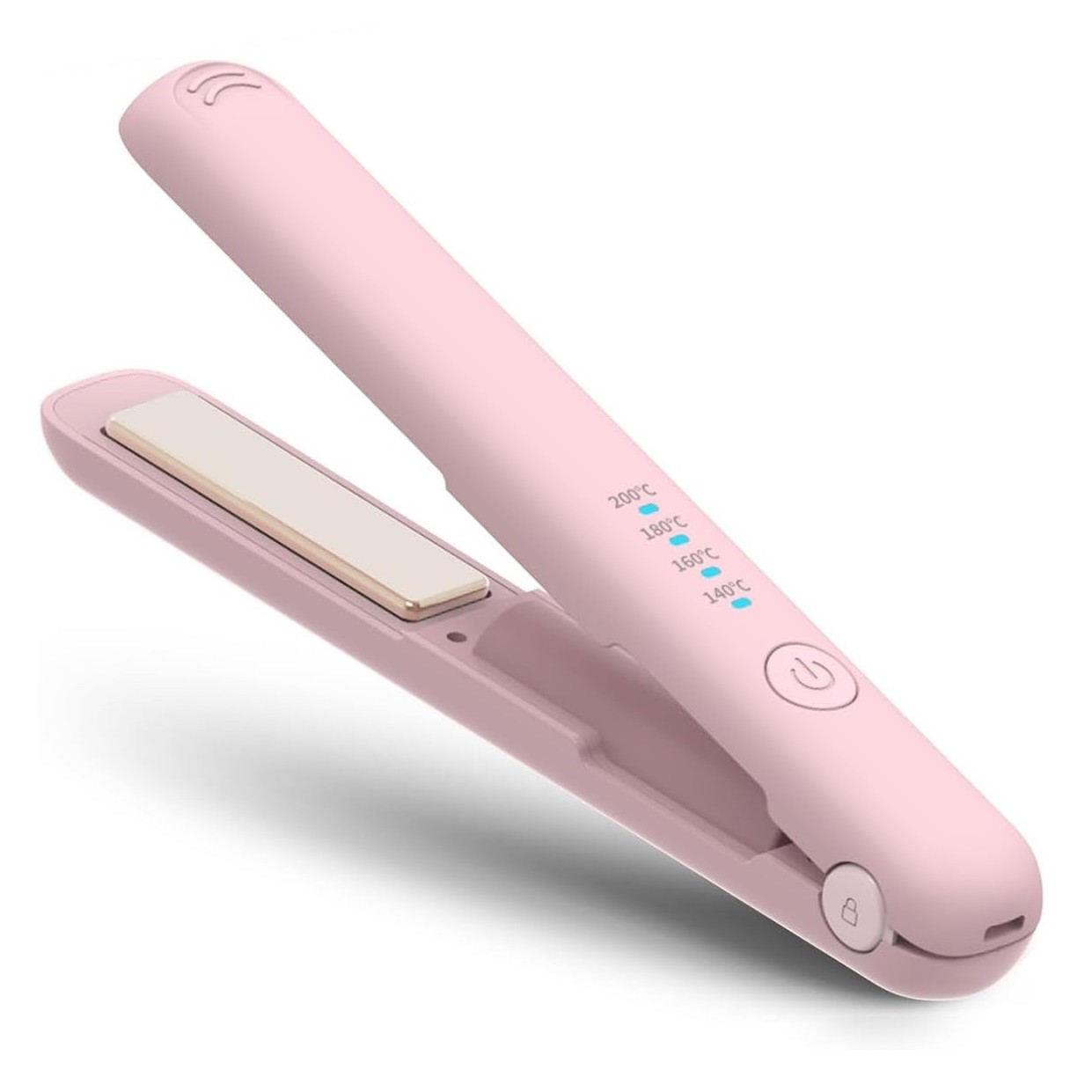 Placa de Par fara Fir, Adaptor Tip C, Tensiune 5V, Capacitate Baterie 3000 mAh, Indreptat, Ondulat, 4 Trepte de Temperatura, 21.8 x 3.1 x 3.4.1 cm, Roz