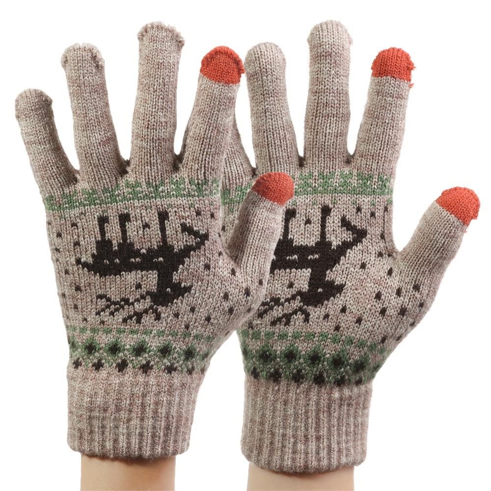 Manusi de Dama, Model Ren, Functie Touchscreen (ecran tactil), Material Acril Tricotat, Manseta Elastica, Interior Catifelat, Marime Universala, Kaki