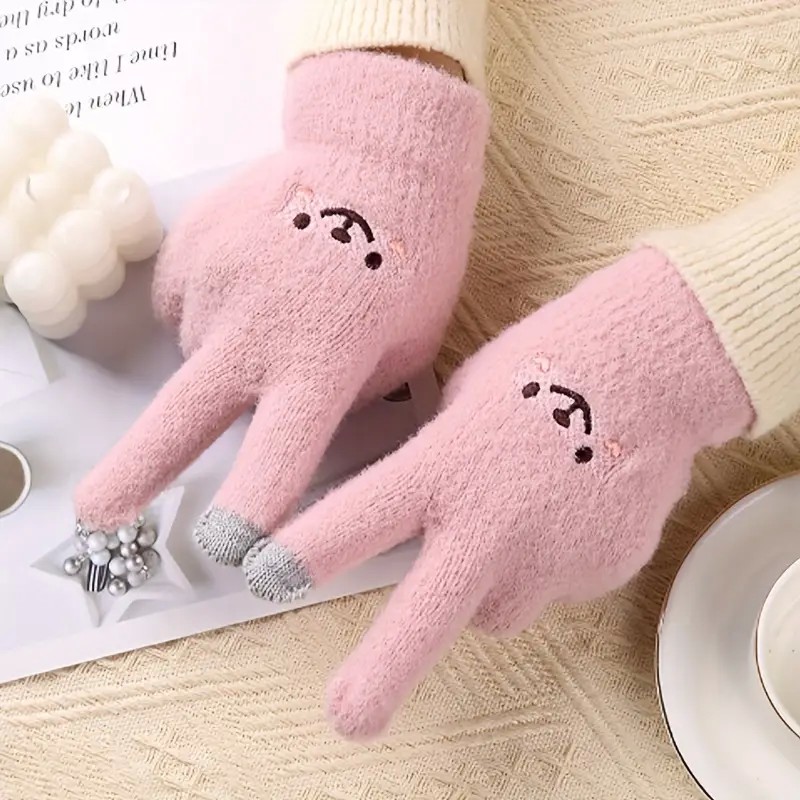 - Design atractiv: Fața zâmbitoare brodată adaugă o notă jucăușă și distinctivă mănușilor, făcându-le o alegere ideală pentru femeile care doresc să adauge un pic de veselie ținutei lor de iarnă.