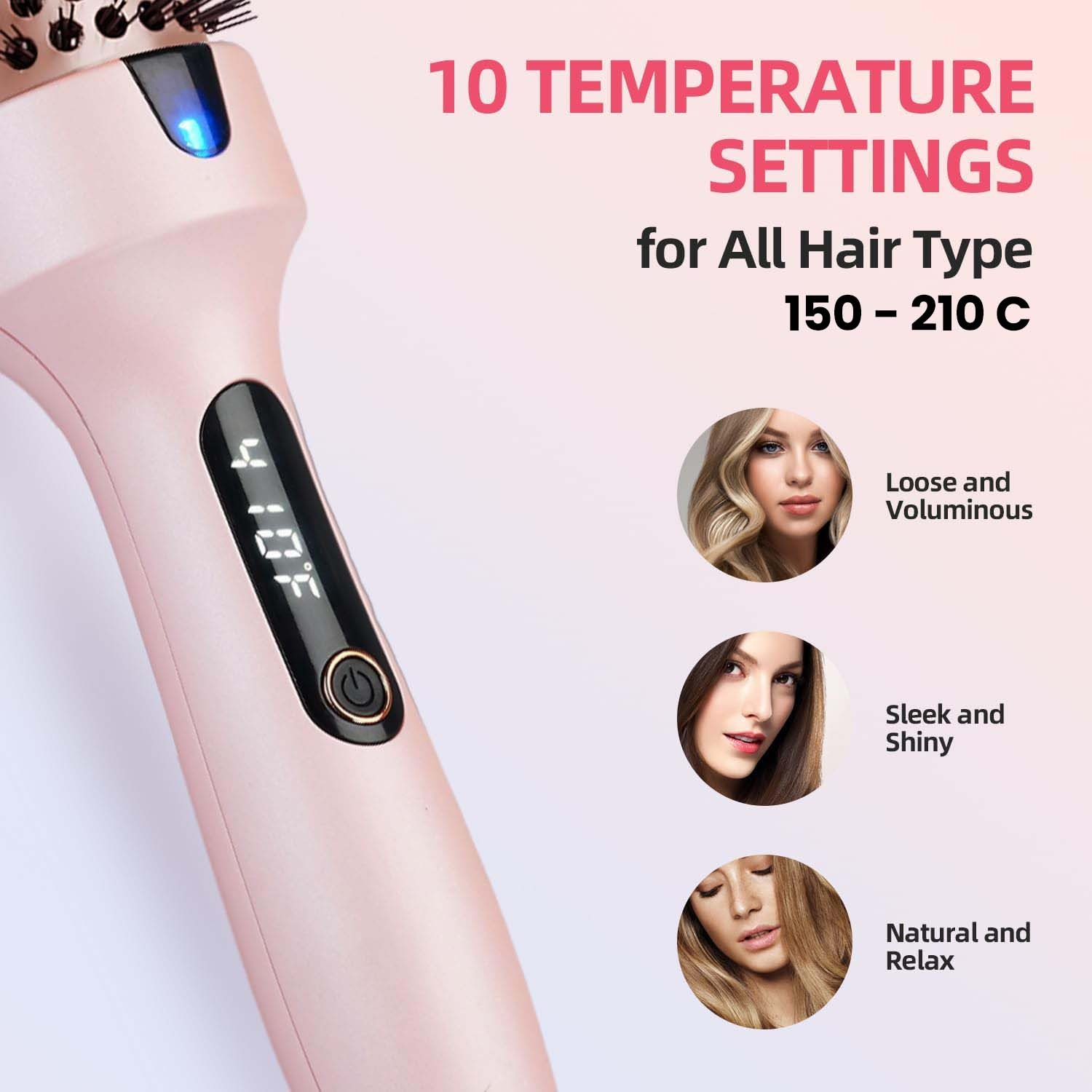 Peria dispune de 10 setari de temperatura, reglabile intre 150 si 210°C, fiind potrivita pentru toate tipurile de par. Afisajul LED permite control precis al temperaturii, iar cilindrul acoperit cu ceramica asigura distribuirea uniforma a caldurii.