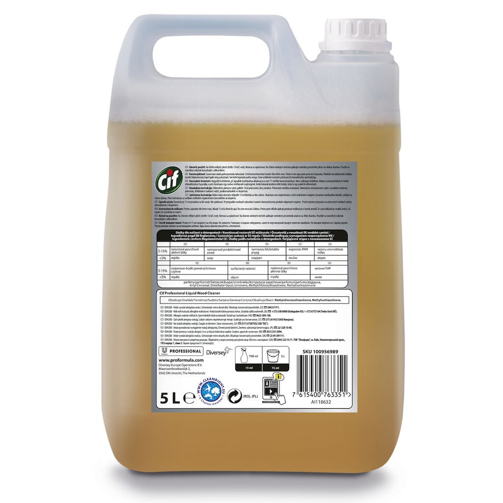 Cif Pro Formula Detergent Pentru Suprafete Din Lemn este special formulat pentru a curata bine murdaria de pe suprafetele din lemn impermeabilizate, fara a le deteriora si pastrand aspectul original.