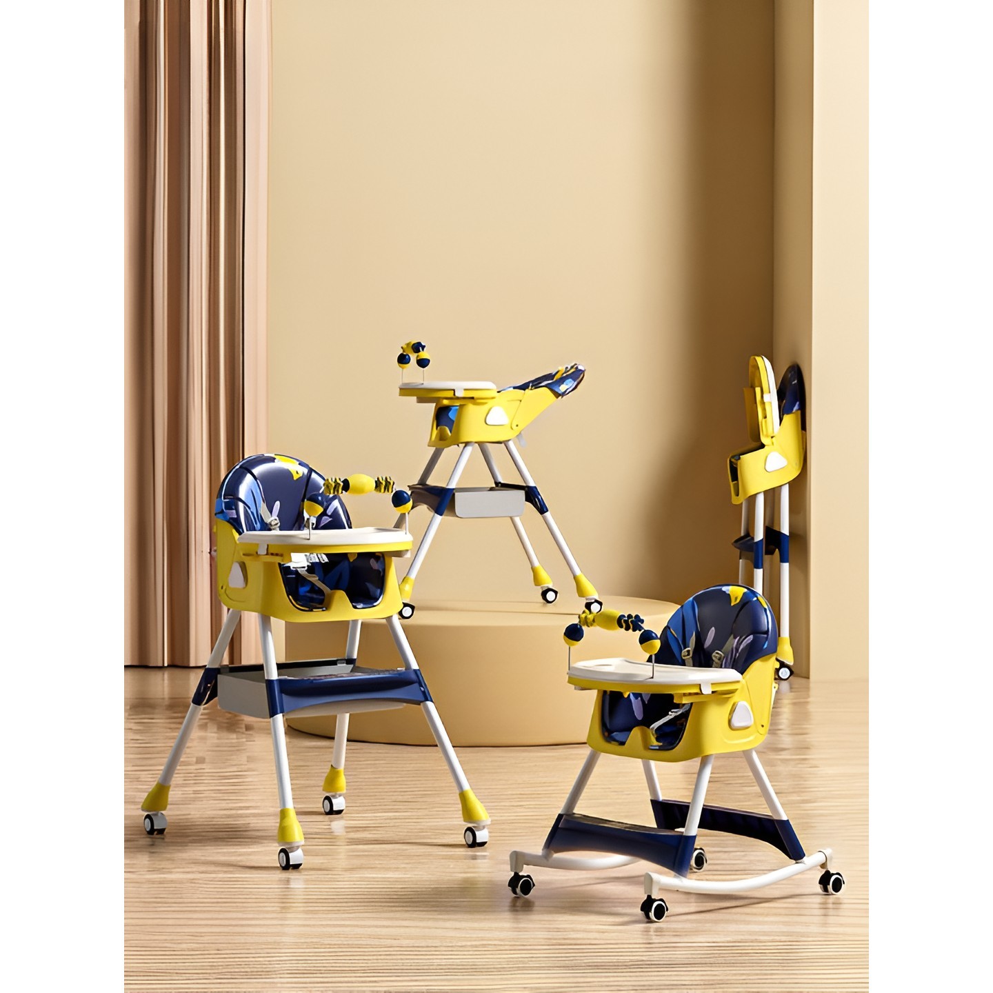 Scaun de Masa pe Roti pentru Copii, 2 Tavite si Husa Detasabile, Multifuncțional, Stabil, Centura de Siguranta, Spatar Reglabil Moale, Balansoar, Cos de Depozitare, de la 6 Luni, Galben