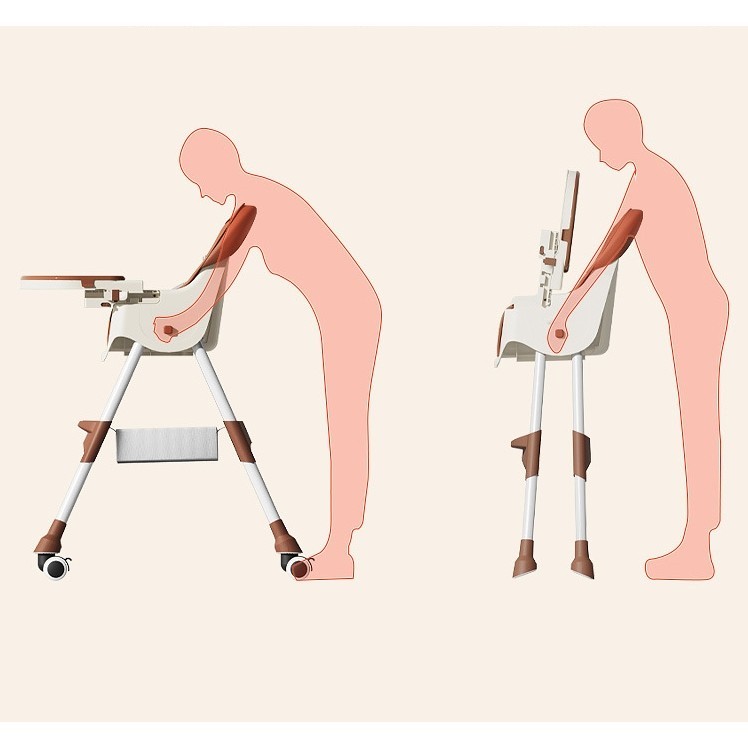• Roti cu Blocare: Rotile permit deplasarea ușoară a scaunului, iar blocarea acestora asigură stabilitate în timpul meselor.
