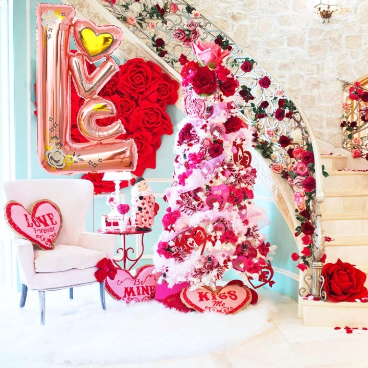 Balon din Folie Metalizata, Figurine, Model LOVE, Tematica Iubire, 110x64 cm, Ambalaj Individual, Pai Inclus, Umflare cu Aer sau Heliu, Roz