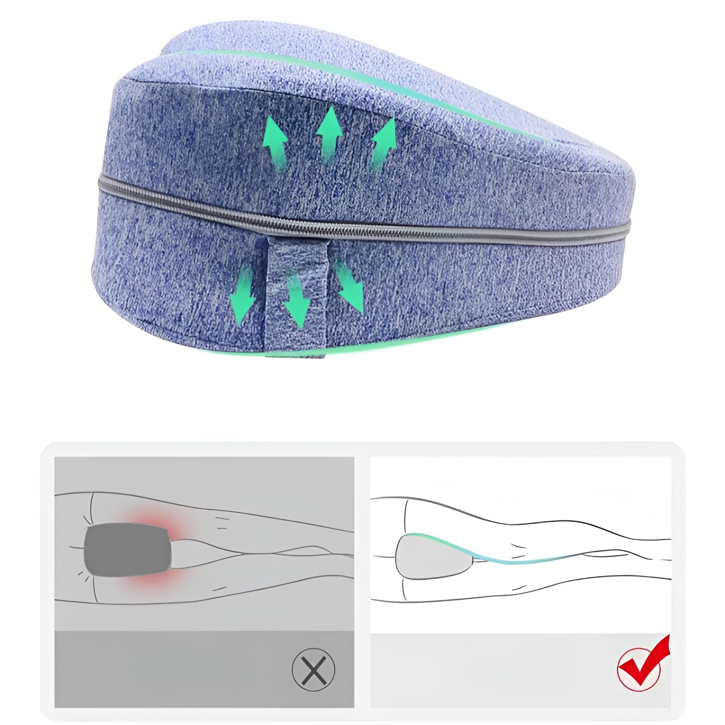 Perna Ortopedica pentru Picioare, Multifunctionala, Confortabil?, in Forma de Inima, Spuma cu Memorie, Curea Anti-cadere, 25x23x13 cm, Albastru