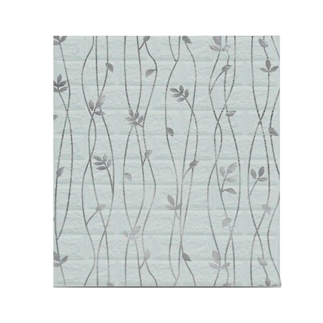 Design 3D realist: Textură de cărămidă cu imprimeu frunze argintii, aducând un aer modern și elegant oricărui spațiu.