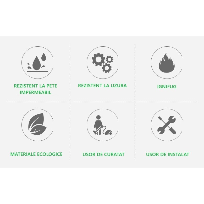 Functii: Impermeabil Ignifug Rezistent la trafic