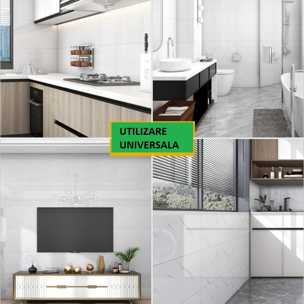 - Impermeabil: Rezistent la apă, perfect pentru utilizarea în băi sau bucătării.