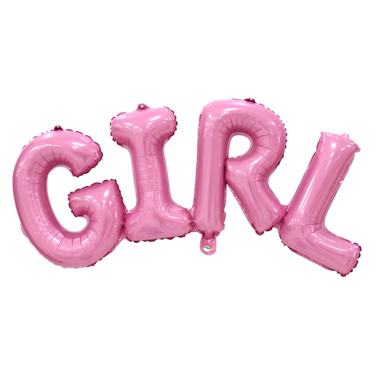 Set Baloane din Folie Metalizată, Model Scris Girl, 43x106.5 cm, Tematica Baby Shower, Baloane Party, Ambalaj Individual, Pai Inclus, Umflare cu Aer sau Heliu, Roz