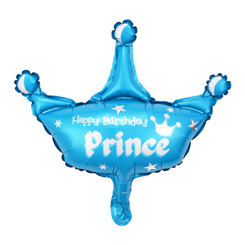 Set 3 Baloane din Folie Metalizata, Figurine Coroana si Stea, Model Aniversare, 40 cm, Ambalaj Individual, Pai Inclus, Umflare cu Aer sau Heliu, Albastru