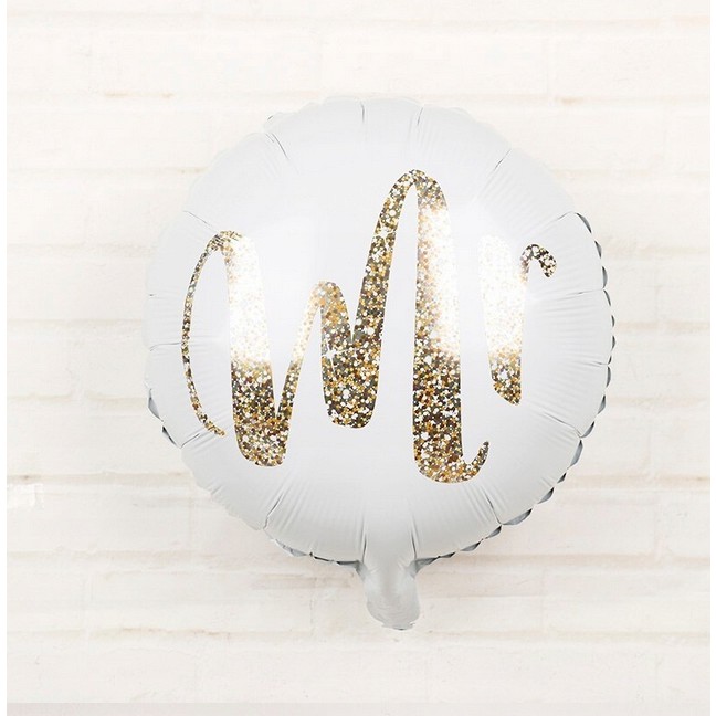 Balon din Folie Metalizata, Figurina Cerc, Model MR, Tematica Nunta, 45 cm, Ambalaj Individual, Pai Inclus, Umflare cu Aer sau Heliu, Alb