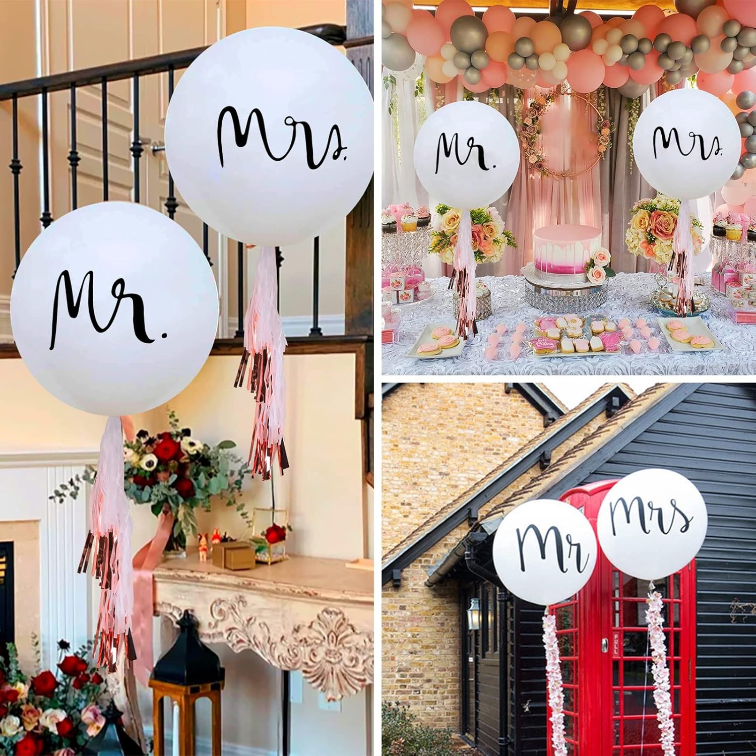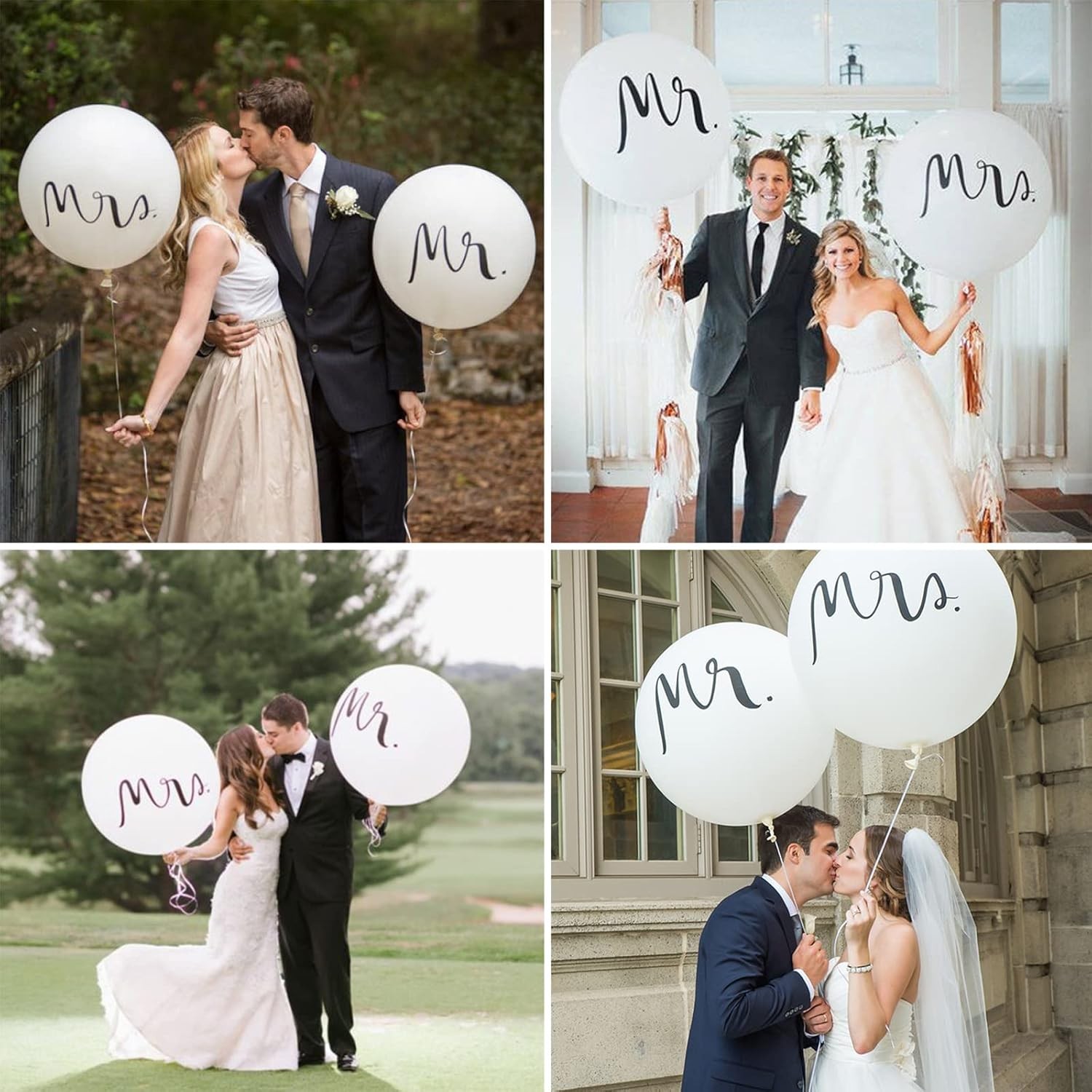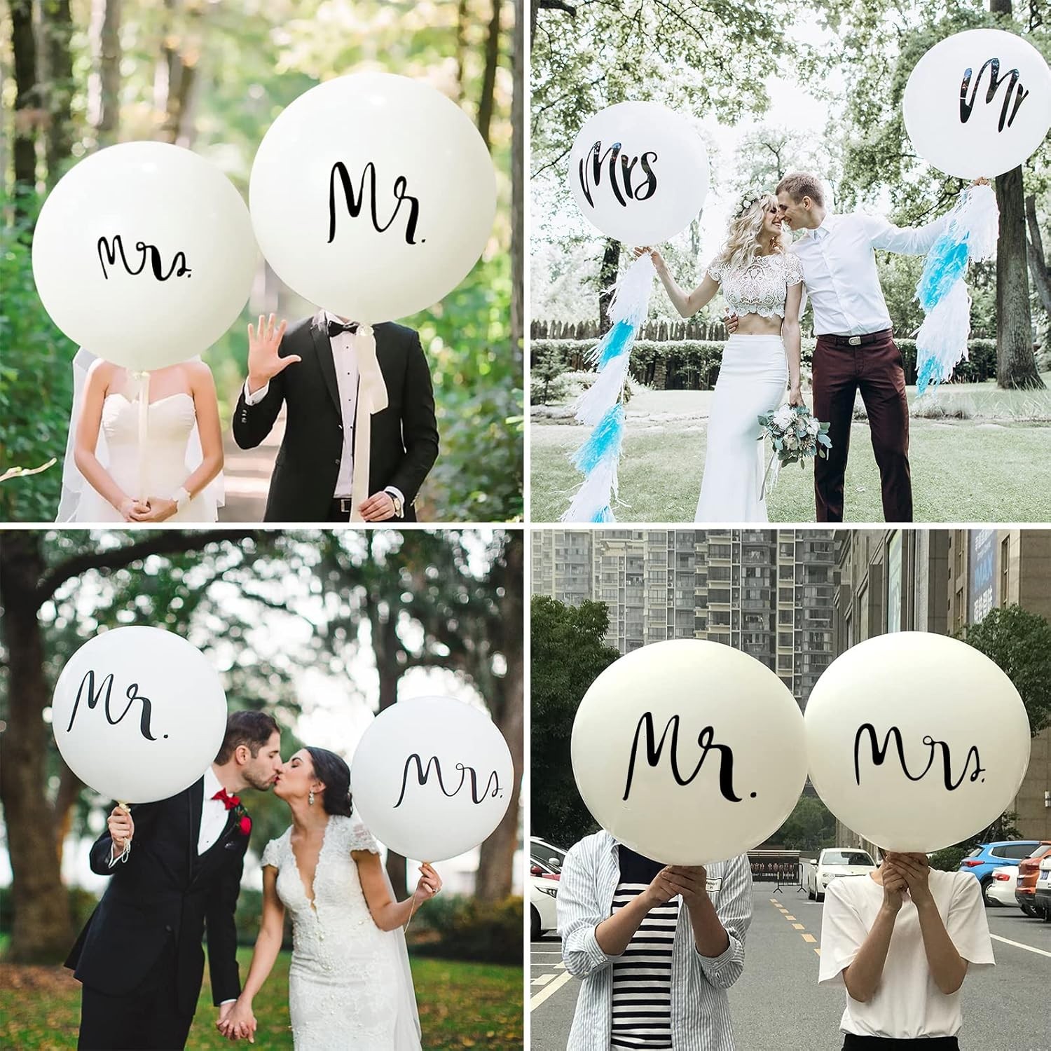 Set 2 Baloane din Latex, Tip Jumbo, Model Mr si Mrs, Tema Nunta, 45 cm, Alb