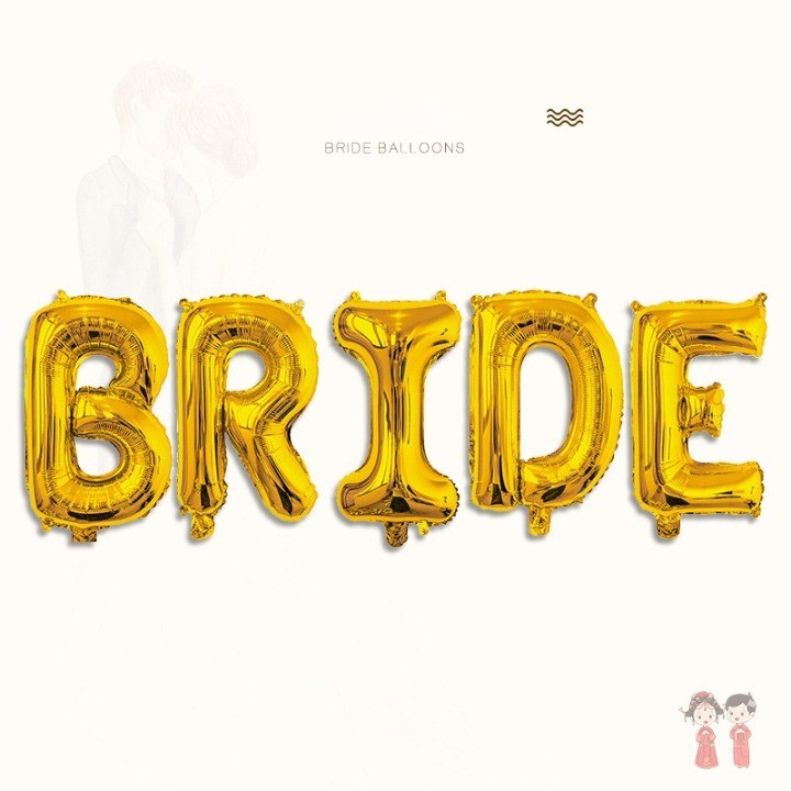 Set Baloane din Folie Metalizata, Model Scris Bride, Litere de 40 cm, Tema Iubire, Baloane Party, Ambalaj Individual, Pai Inclus, Umflare cu Aer sau Heliu, Auriu