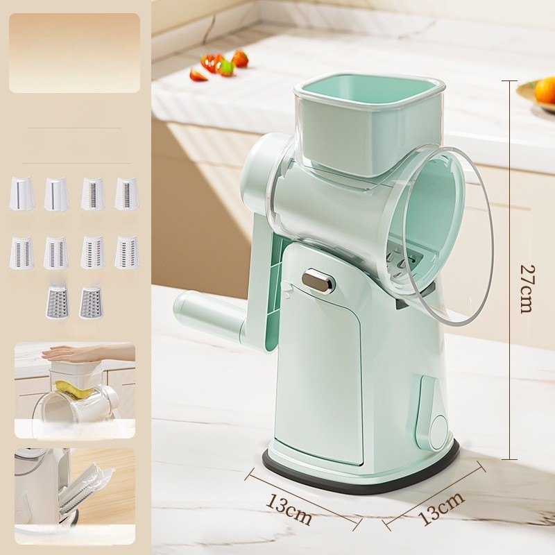 Răzătoare Manuală, Rotativă cu Manivelă, 10 Lame Interschimbabile, Anti-stropire, 27 x 13 x 13 cm