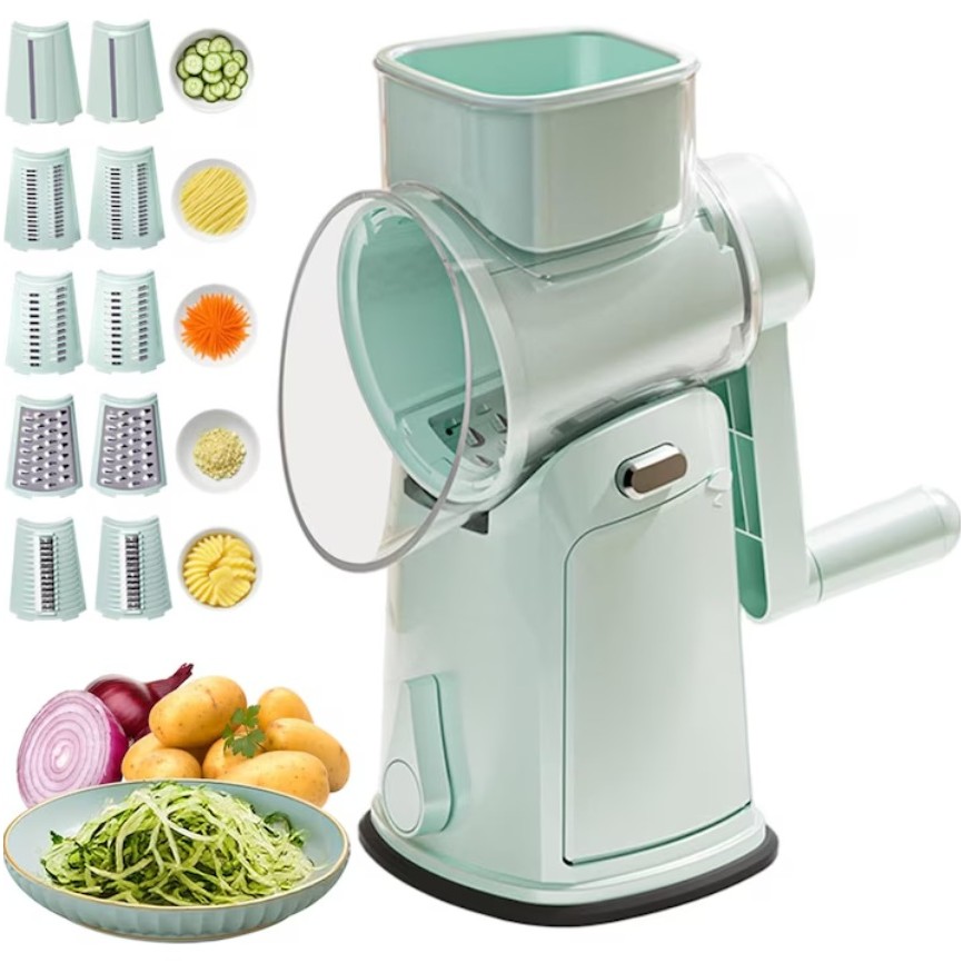 Răzătoarea manuală este un ajutor practic și eficient în orice bucătărie, concepută pentru feliere, răzuire și mărunțire rapidă a legumelor, fructelor sau brânzeturilor. Designul rotativ cu manivelă reduce efortul depus, iar sistemul de prindere cu ventuză asigură stabilitate maximă în timpul utilizării.