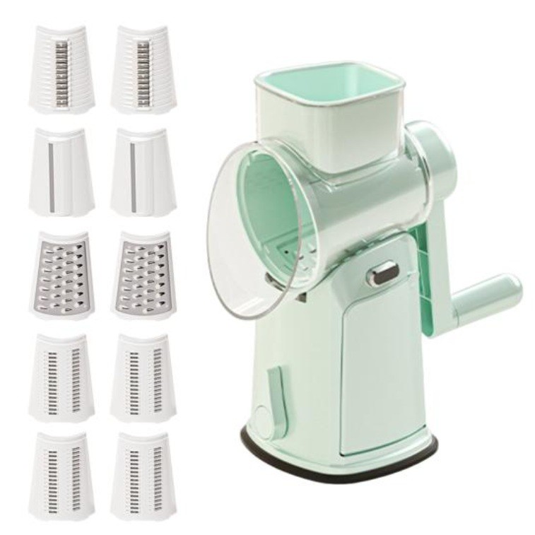 Razatoare Manuala, Rotativa cu Manivela, 10 Lame Interschimbabile, Anti-Stropire, 27 x 13 x 13 cm, Turcoaz